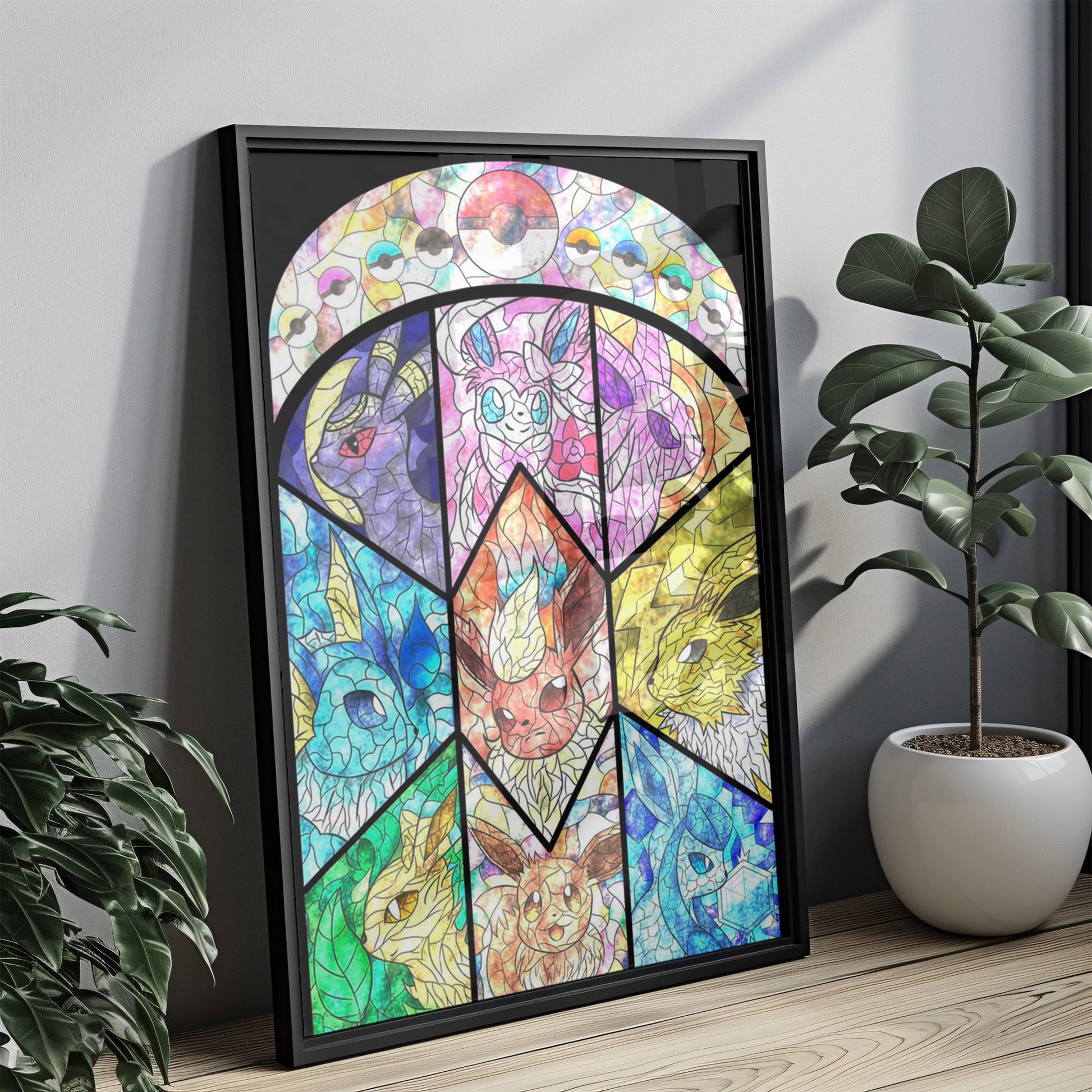 Descubre todas las evoluciones de Eevee con este impactante Poster Evoluciones Eevee . Un diseño atrevido que captura la esencia de cada transformación, perfecto para los fans que no temen destacar y mostrar su pasión por la evolución. Dale a tu espacio un toque audaz y lleno de energía Pokémon. ¡Atrévete a evolucionar con estilo!